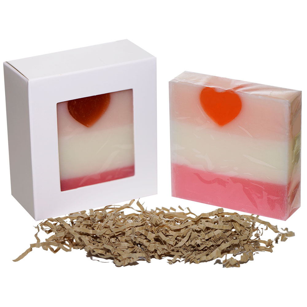 This skin soothing soap is scented with premium oils and essential oils, which are all knows for their natural benefits to the skin. The three tone soap design with a fine line of white, orange, and pink clay is a nice statement piece in every bath room or a gift pack.